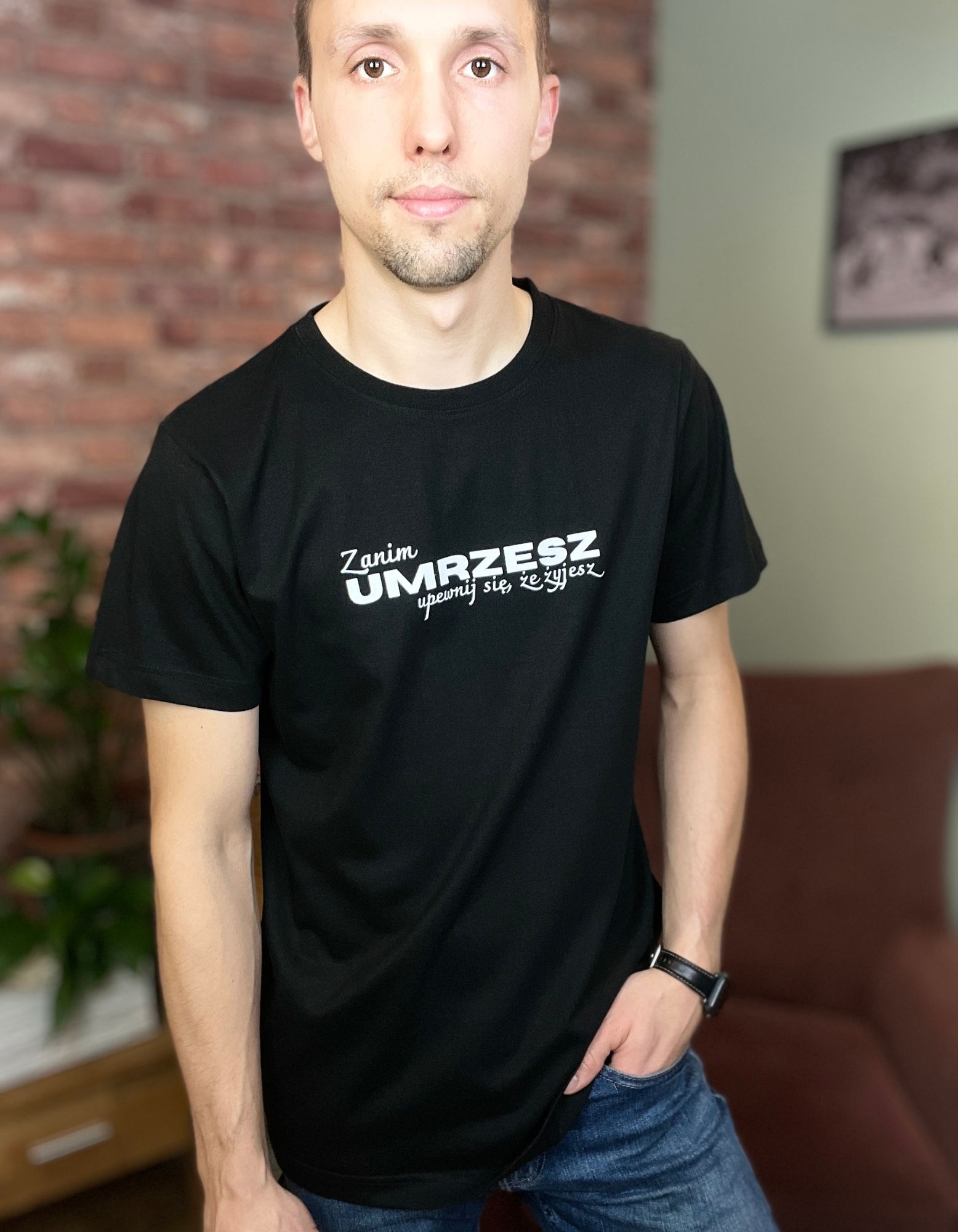 Koszulka z nadrukiem „Zanim umrzesz, upewnij się, że żyjesz” .