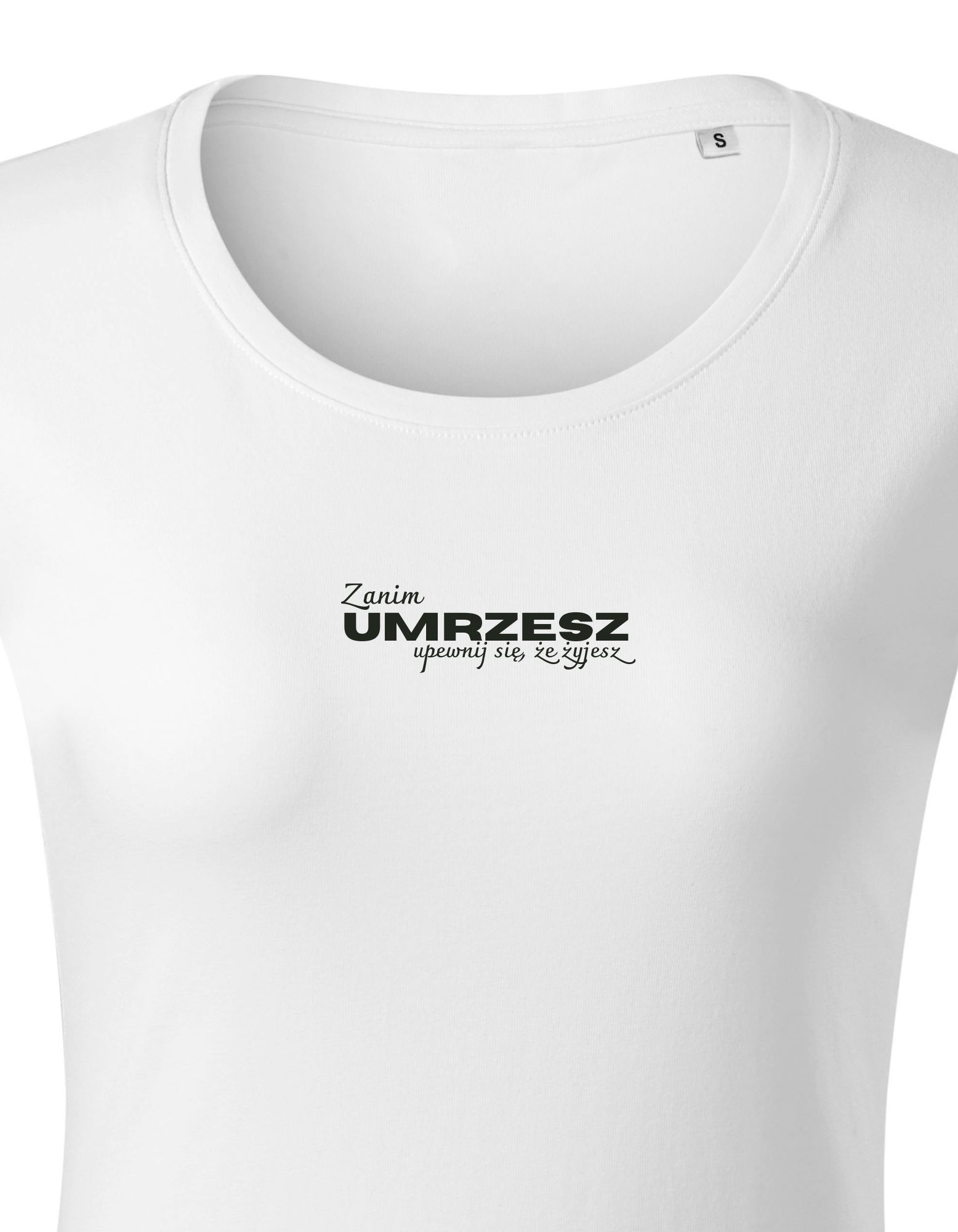 Koszulka z nadrukiem „Zanim umrzesz, upewnij się, że żyjesz” .